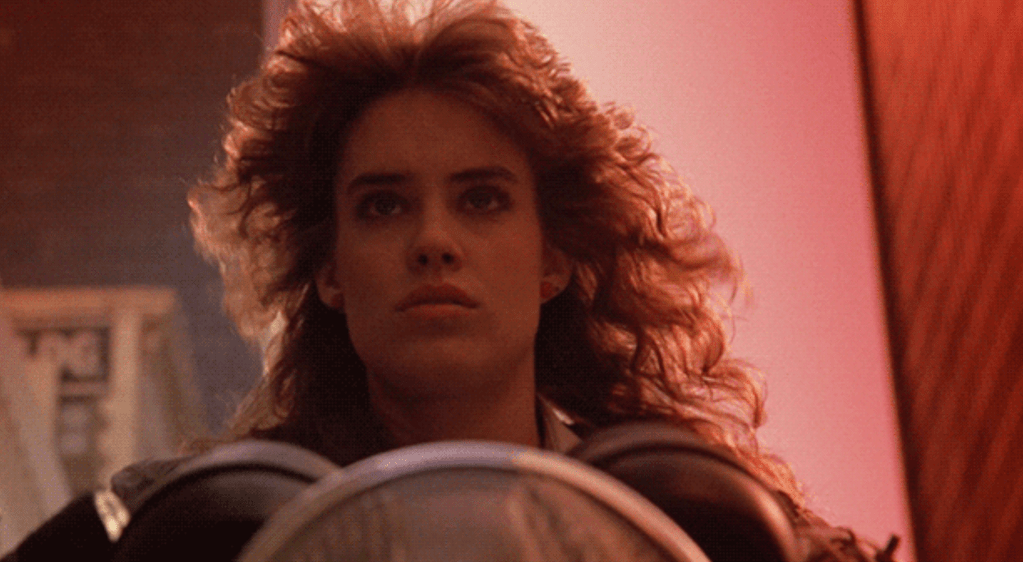 Given that Night of the Comet is a B movie set in and released in the mid-1980s, one may worry ahead of time that writer-director Thom Eberhardt might condescend to his young woman leads the way some of his peers might. They’re Valley girls who count shopping and partying among their favorite pastimes. (Sam is a cheerleader, too: she spends most of the movie in her aqua-blue and pink Rebels uniform.) But Eberhardt never undermines the humanity of these smart and capable heroines; you sense a deep care for them. Eberhardt has said in interviews that he molded the sisters after Ginger Rogers — that is, characters he could imagine Rogers playing — and you can see some of her take-life-by-the-reins pluckiness in Reggie and Sam. Reggie at one point declares that she’s so strong-willed because she’s a cancer — an astrological sign she shares with July baby Ginger.