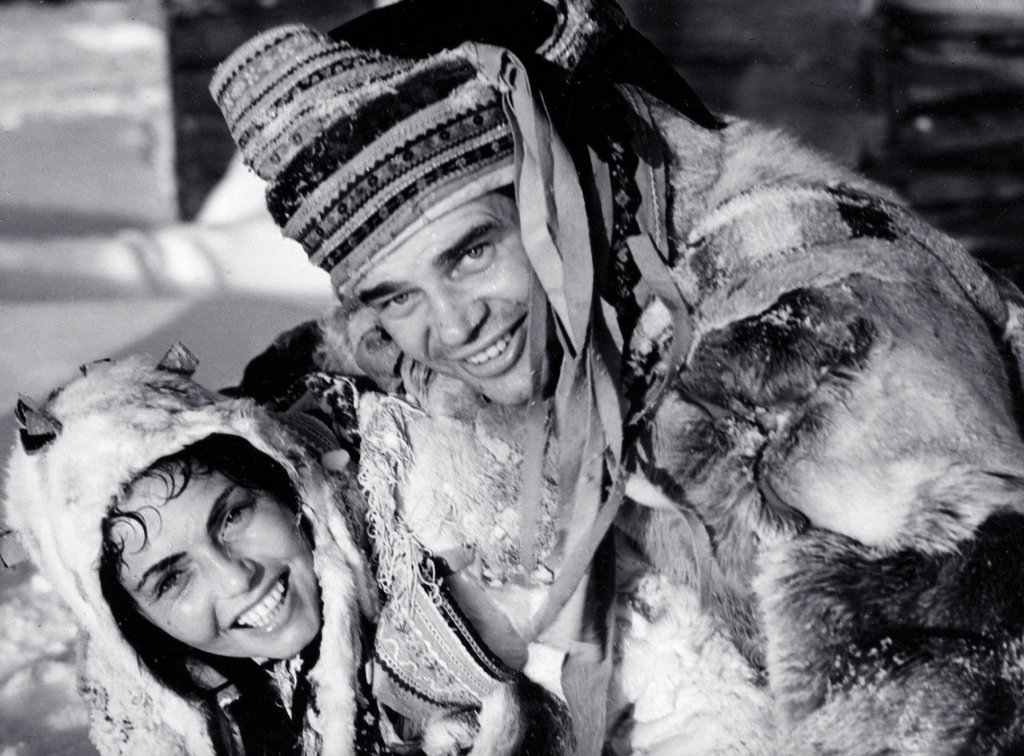If not for its foreboding introduction, one would not think at first that The White Reindeer would move in the haunting direction it does. It properly begins with an ebullient, high-energy meet-cute between Pirita and her soon-to-be-husband, Aslak (Kalervo Nissilä), who are taking part in an impromptu, all-smiles reindeer race through the snowy Finnish Lapland landscape where the film is set. It’s love at first dash. A dowry with Pirita’s father to make their marriage official is being exchanged practically before we know it.