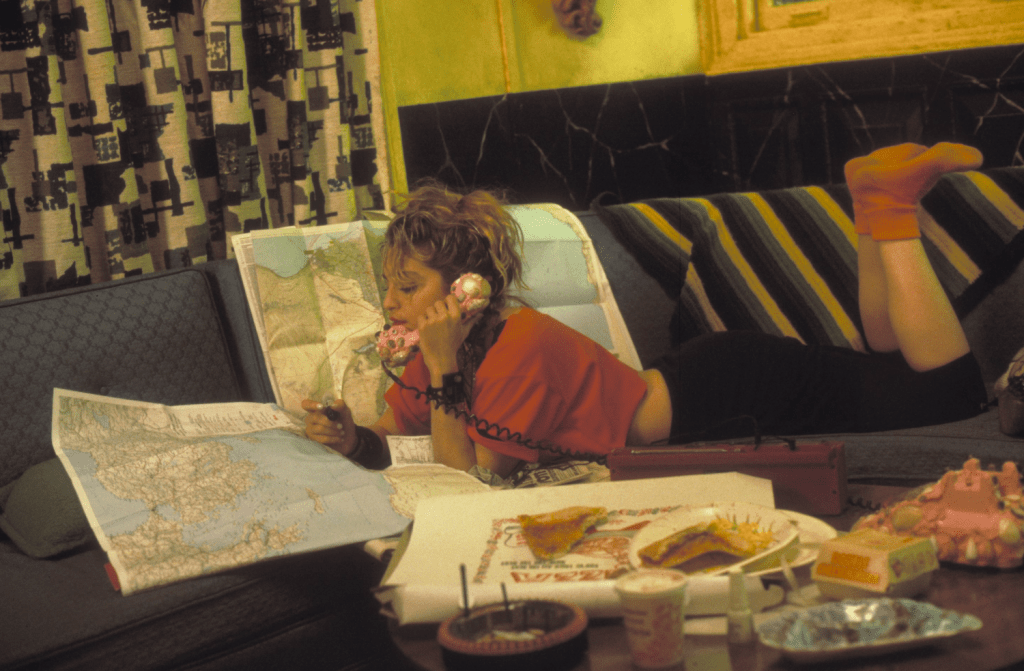 Desperately Seeking Susan’s most straightforward pleasure is the chance to see Madonna at an early peak. She was fresh from two albums that would establish her as a beacon of musical fun, and that helped her become a totem of outspokenness and stylishness that was aspirational to those it didn’t turn off. Little did anyone know of the incoming reinvention that would be the first of many for Madonna. She’d slim down her tanned Rubenesque frame into a pale gamine’s, straighten out her tangle-haired downtown-girl image into primmer old Hollywood-nodding aesthetics, and focus more precisely on how to up the echelon on her already-astronomical fame. Legions would continue to be their own variations of Roberta, dutifully following the cult of personality wherever she might go next.