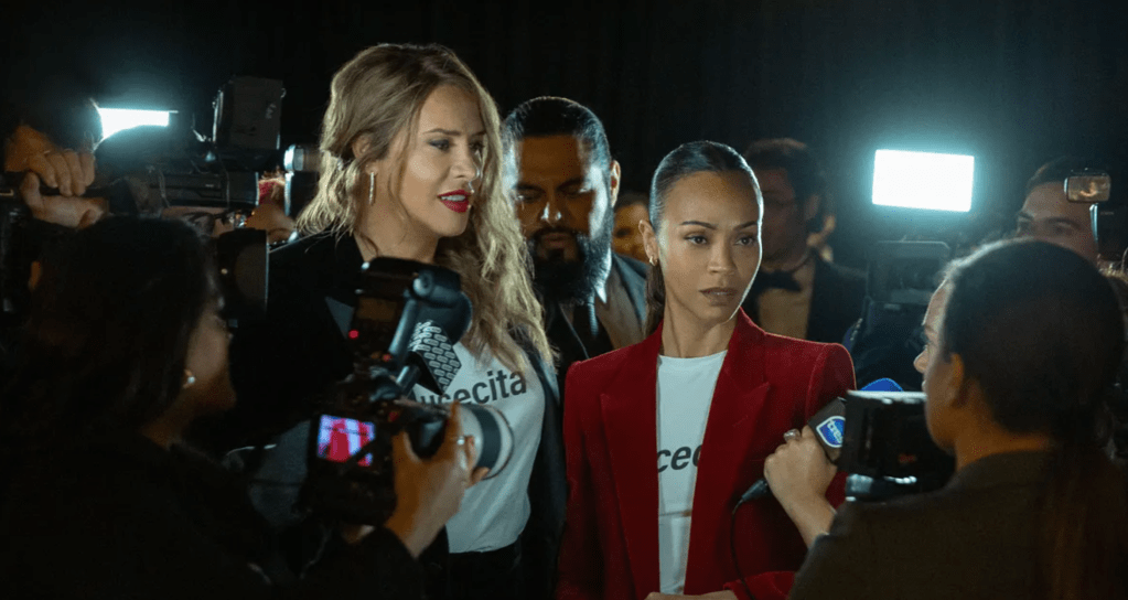 Karla Sofía Gascón and Zoe Saldaña in Emilia Pérez.