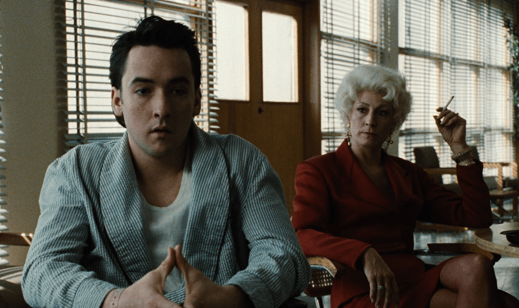 “Grifters got an irresistible urge to beat a guy who’s wise.” So says a con artist in a wide-brimmed hat (Eddie Jones) who appears in one scene midway through The Grifters (1990), a movie that rests its gaze on three other people who cheat for a living. There’s Roy (John Cusack), a baby-faced 25-year-old who scrapes by with small cons involving nickels and quarters and quickly switched-out bills when requesting change; Myra (Annette Bening), his wild-haired girlfriend who puffs up her sexuality with Marilyn Monroe-esque coos and girlish smiles to get out of paying rent and reap higher rewards at pawn shops; and Roy’s mother, a cool blonde named Lilly (Anjelica Huston) who works for a brutal mob bookmaker (Pat Hingle) who will not refrain from, say, burning the dorsal side of her hand with a cigar if he thinks she’s stepped out of line.