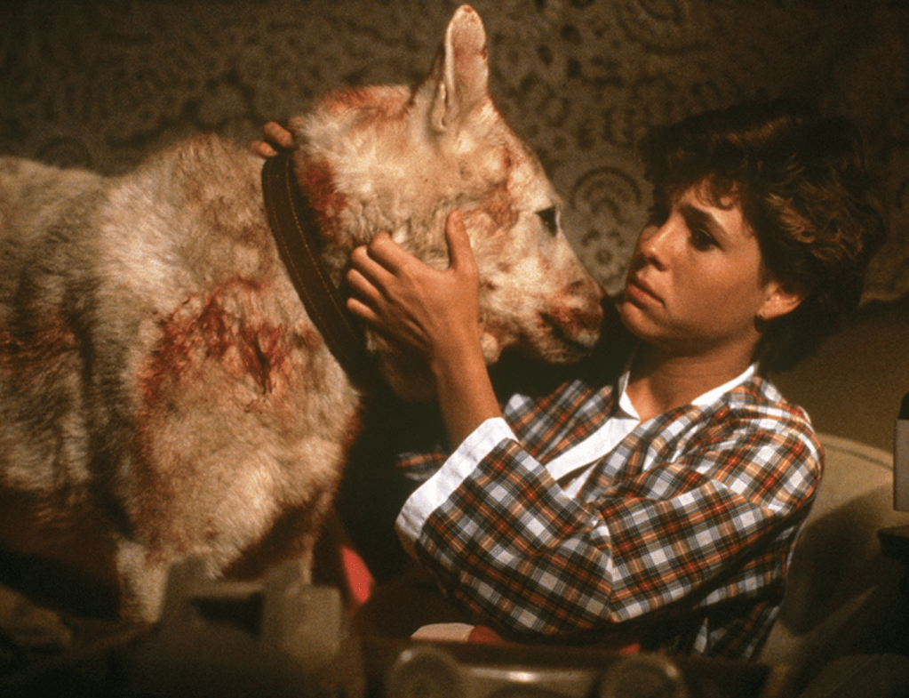 Samuel Fuller’s consistently unsentimental movies became less amenable to happy endings the older he got. His last American movie, White Dog (1982), was no exception, whether we’re talking about the arc of its narrative or the fraught circumstances surrounding its theatrical release. The movie is about a beautiful, snow-white German Shepherd taken in by a young actress, Julie (Kristy McNichol), after she accidentally hits him with her car on a winding Los Angeles road. Saved at the nick of time by a 24-hour vet clinic, the lost dog, whose owner Julie cannot immediately find, initially lives up to the man’s-best-friend ideal. He’s patient and affectionate, and early in the movie, when Julie is nearly sexually assaulted at home by a neighborhood-prowling rapist that breaks in, he proves to be a dutiful guard dog. Breaking through Julie’s closed-shut bedroom window like a superhero, he tackles the intruder mid-escape and keeps him writhing uncomfortably on the ground until the police arrive.