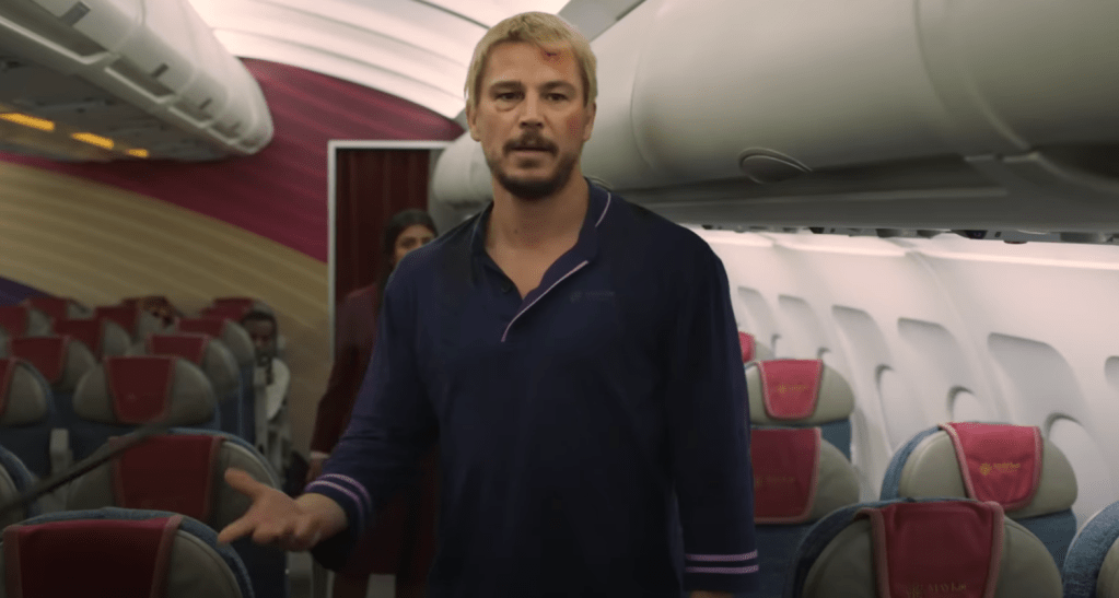 The cheap yellow of Hartnett’s choppy ’do might attract your attention, but presumably it’s meant to disguise. His character, Lucas, is a disgraced former Secret Service agent who’s been in hiding for the last two-ish years and has had to perpetually fend off people wanting him gone ever since his scandalous dismissal. In Fight or Flight, he’s given a chance at redemption by an ex, Katherine (Katee Sackhoff), who now leads a shadowy governmental operation. If he can wrangle midair a hard-to-catch hacker who simply calls themselves The Ghost who’s on board an LA-bound flight, his name will be cleared. There are inevitably a few complications: Katherine’s enterprise might not be so upstanding, and The Ghost’s intentions might actually be for the greater good. But Fight or Flight’s real kicker is that most of the plane’s passengers have Lucas’ exact same mission and have, at baseline, a commensurate capacity for ruthlessness to complete it.
